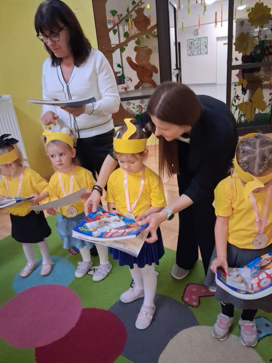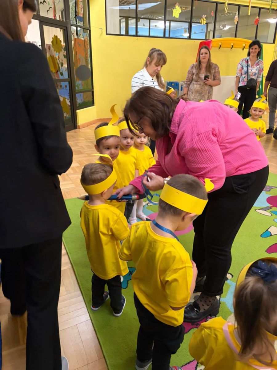 24 października to ważna data zrówno dla naszych Promyczków, jak i dla ich Rodziców. W ten dzień odbyło się w naszym przedszkolu uroczyste Pasowanie na Przedszkolaka. Nasi wychowankowie pięknie wystąpili z krótkim programem artystycznym, na koniec prosząc Rodziców do wspólnej zabawy. Ci z kolei nie kryli łez wzruszenia. Następnie pani Dyrektor pasowała każde dziecko dotykając jego ramienia ogromną kredką i wręczyła piękne dyplomy, a wychowawczynie - drobne upominki. Po części oficjalnej wszyscy zostali zaproszeni na wspaniały poczęstunek. Od teraz jesteśmy pełnoprawnymi Przedszkolakami.