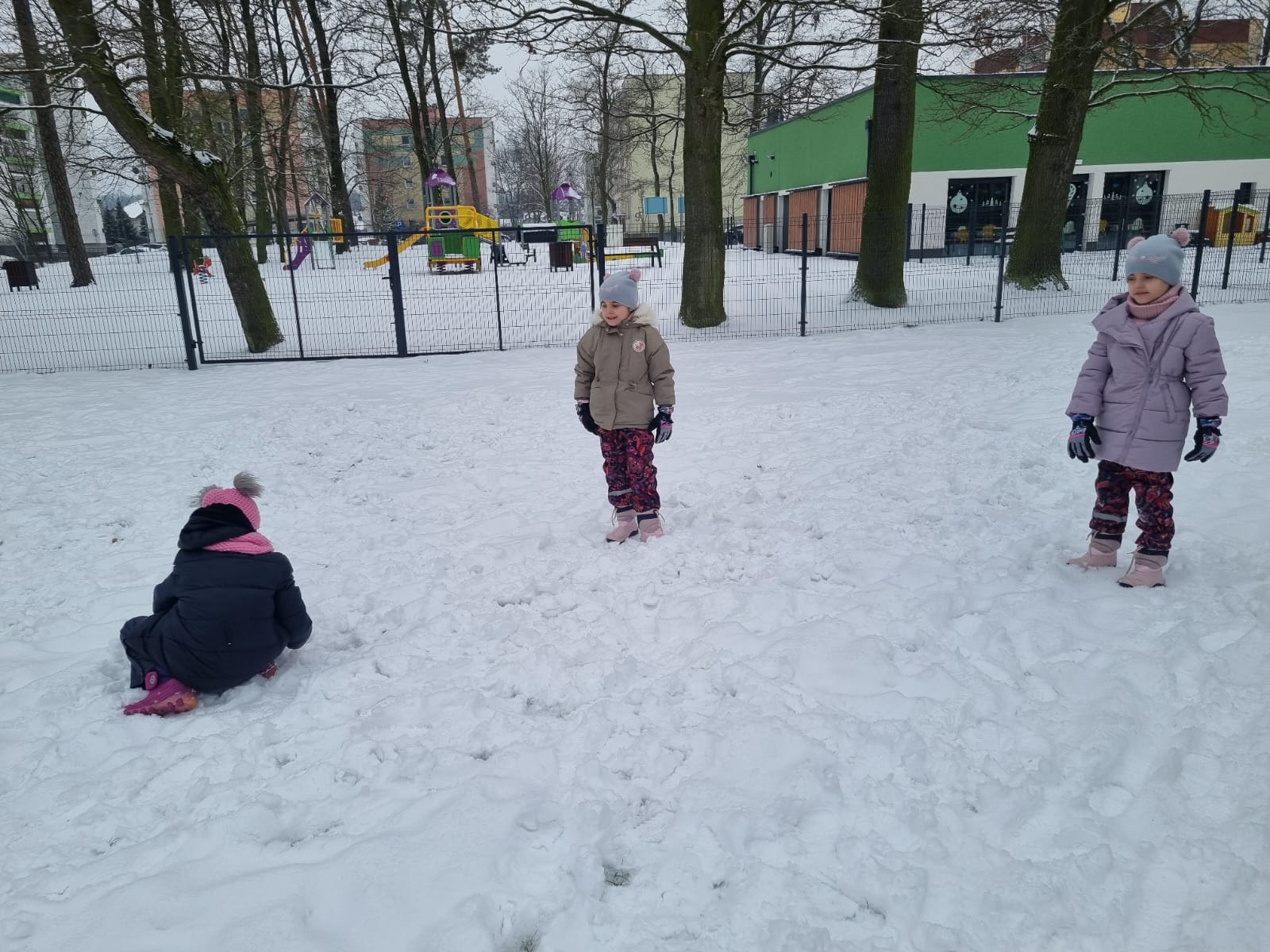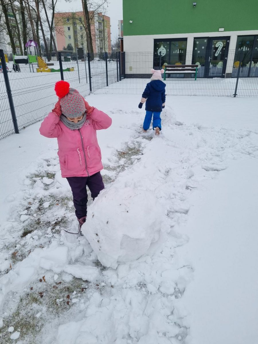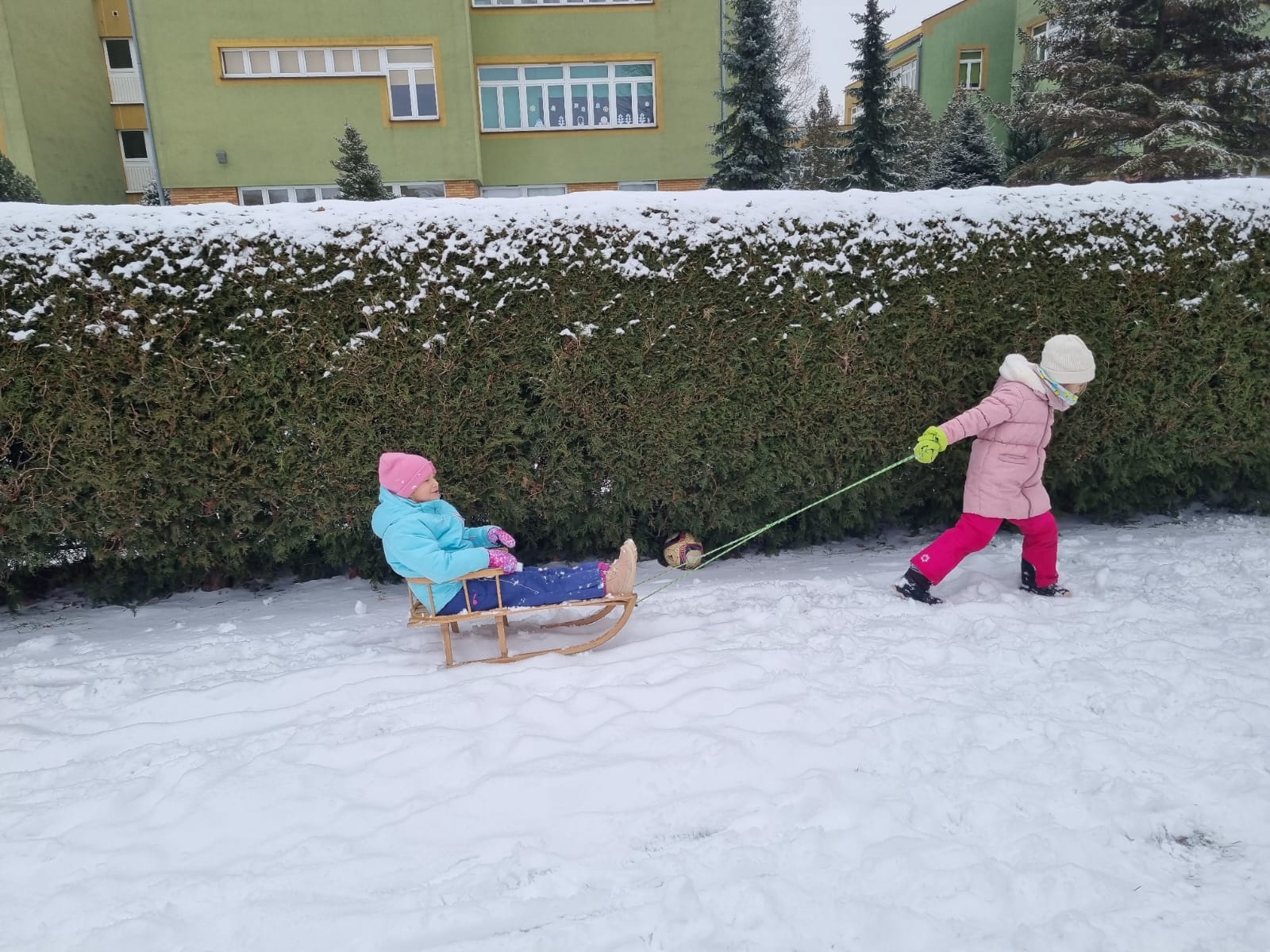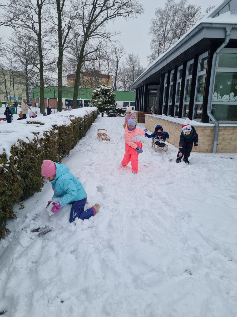 Za oknem pojawił się pierwszy śnieg, który jak wiadomo uwielbiają wszystkie dzieci. Zimowa aura zachęca do korzystania z naszego podwórka