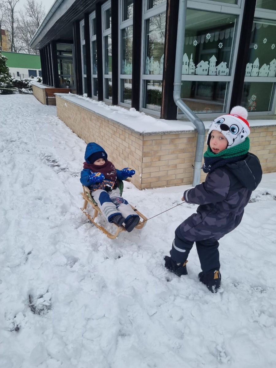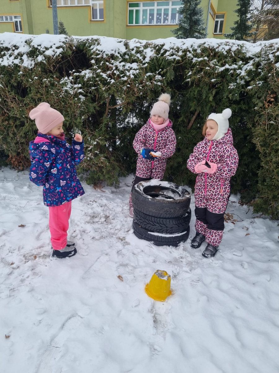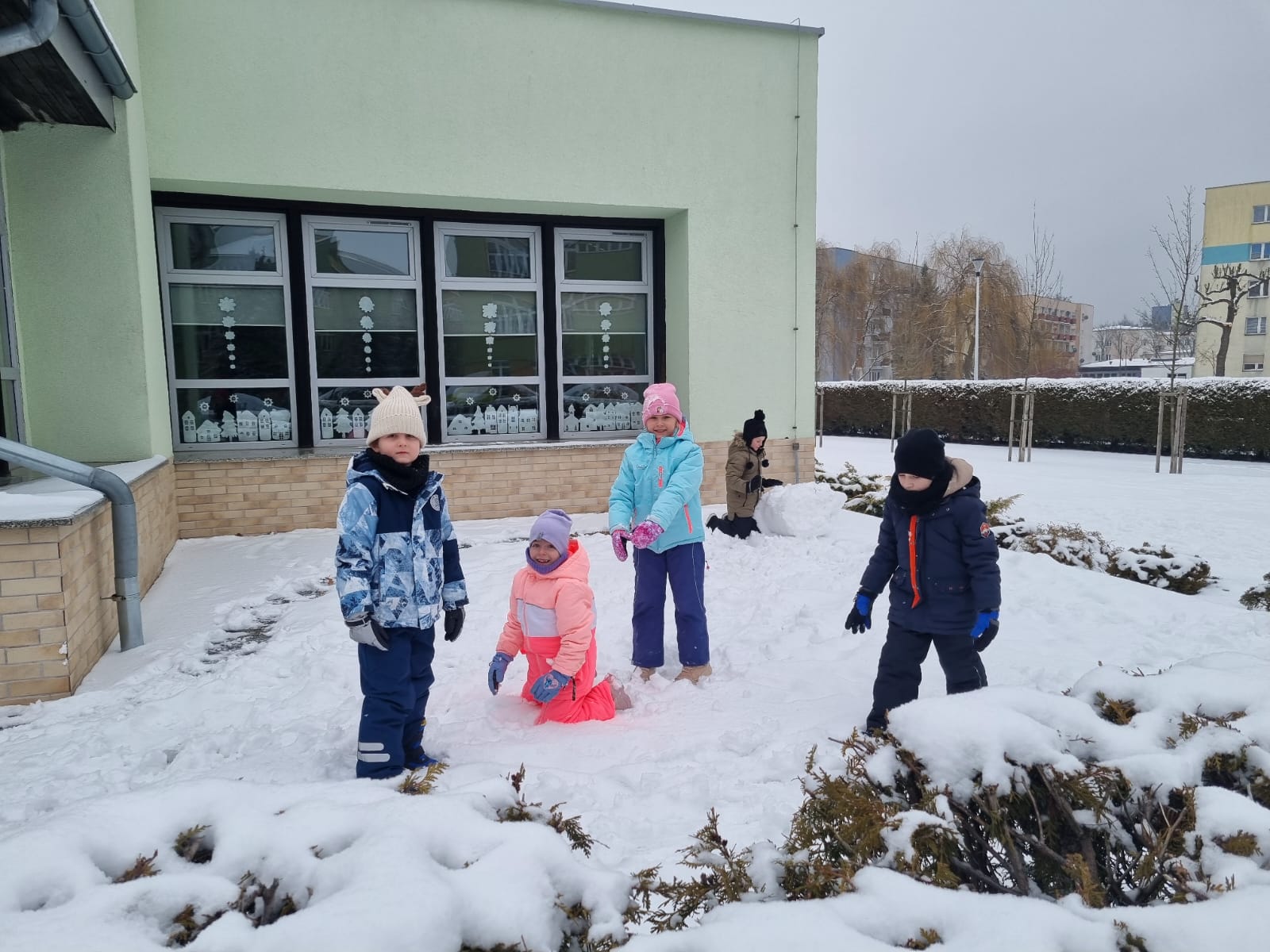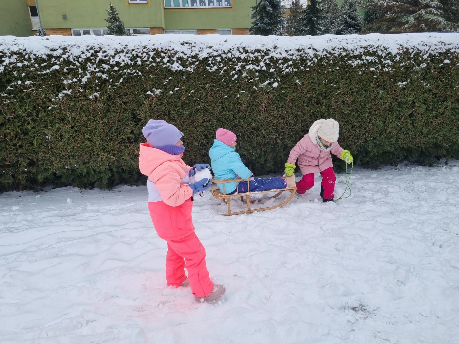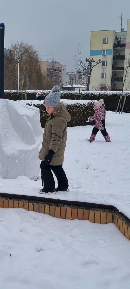 Za oknem pojawił się pierwszy śnieg, który jak wiadomo uwielbiają wszystkie dzieci. Zimowa aura zachęca do korzystania z naszego podwórka