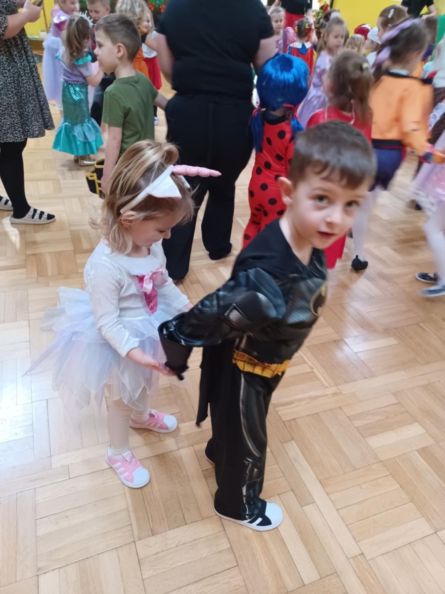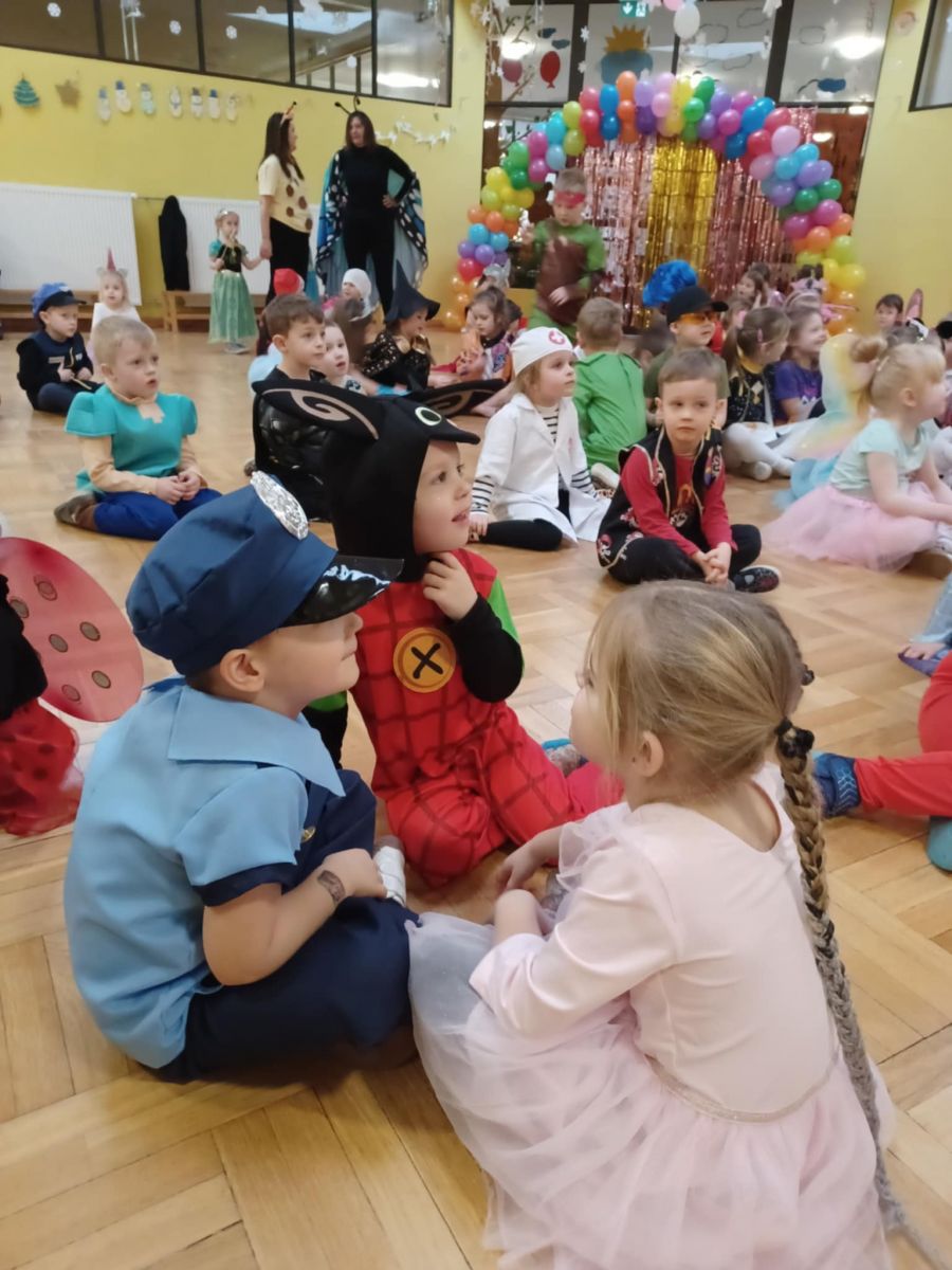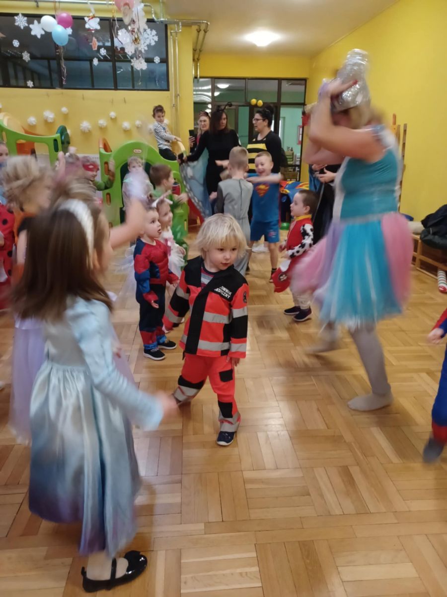 Jak karnawał - to zabawa! W tym roku Promyczki pierwszy raz uczestniczyły w zabawie karnawałowej. Wykazały się wielką odwagą i chęcią integrowania się ze środowiskiem przedszkolnym. Bawiły się wspaniale biorąc udział we wszystkich zabawach.
