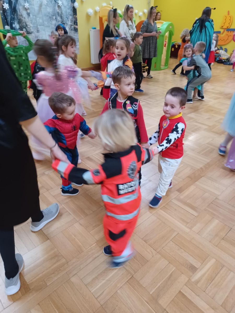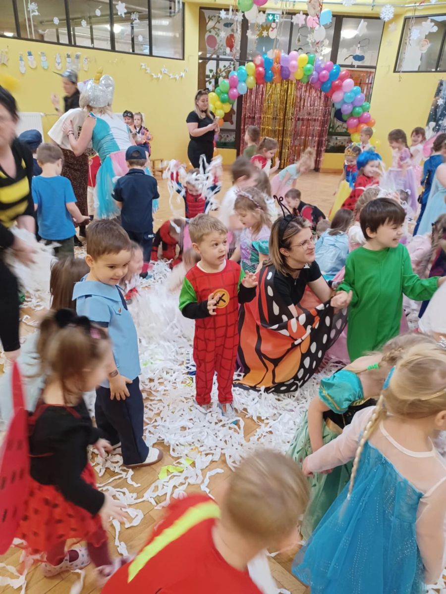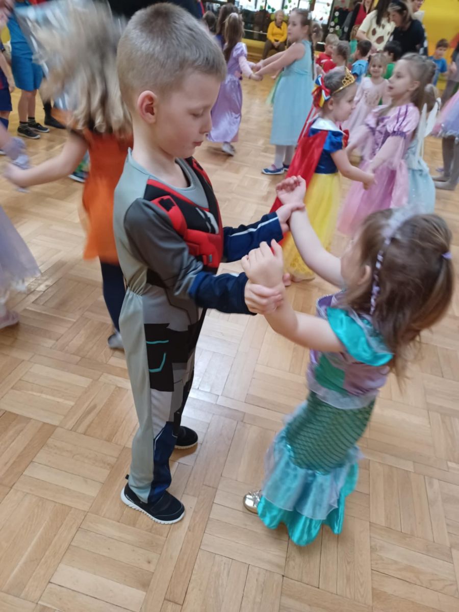 Jak karnawał - to zabawa! W tym roku Promyczki pierwszy raz uczestniczyły w zabawie karnawałowej. Wykazały się wielką odwagą i chęcią integrowania się ze środowiskiem przedszkolnym. Bawiły się wspaniale biorąc udział we wszystkich zabawach.